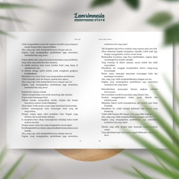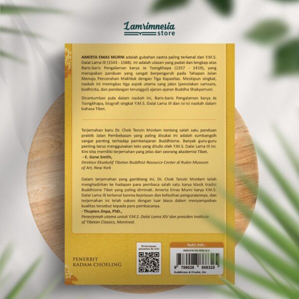 Dalam terjemahan yang gamblang ini, Dr. Chok Tenzin Monlam telah menghadirkan ke hadapan para pembaca salah satu karya klasik tradisi Buddhisme Tibet yang paling diminati. Amerta Emas Murni karya Y.M.S. Dalai Lama III terkenal karena kejelasan dan kefasihan penguraiannya, dan terjemahan ini telah sukses dengan luar biasa dalam menyampaikan kualitas tersebut kepada para pembacanya.