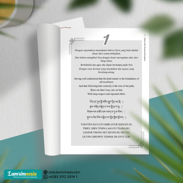 Lamrim by My Side: A Pocket Book of Lamrim menyajikan 3 karya Lamrim Je Tsongkhapa yang singkat, tapi lengkap: Dasar dari Semua Kebajikan 14 bait, Baris-baris Pengalaman 25 bait, dan Tiga Aspek Utama Sang Jalan 14 bait. Ketiga karya berisikan tahapan-tahapan yang perlu ditempuh oleh seseorang untuk mencapai pembebasan samsara bagi diri sendiri dan semua makhluk, mulai dari memahami kebebasan dan keberuntungan terlahir sebagai manusia sampai pada muncul keinginan untuk memaksimalkan tubuh manusia ini sebaik-baiknya hingga mencapai kebahagiaan tertinggi. Ketiga karya juga menyampaikan apa pun kebahagiaan yang diperoleh, semua itu bersumber pada guru. Kita yang mendambakan kebahagiaan, renungkanlah bait-bait dalam ketiga karya ini.
