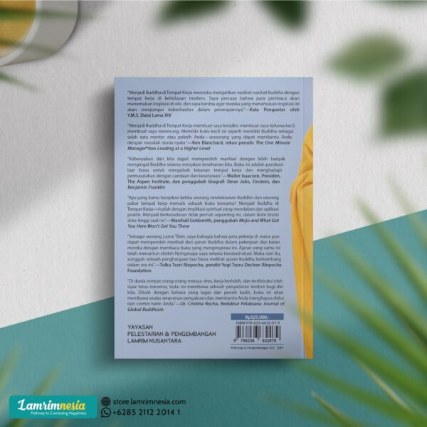 “Menjadi Buddha di Tempat Kerja mencoba mengaitkan nasihat-nasihat Buddha dengan tempat kerja di kehidupan modern. Saya percaya bahwa para pembaca akan menemukan inspirasi di sini, dan saya berdoa agar mereka yang menemukan inspirasi ini akan menjumpai keberhasilan dalam penerapannya.”—Kata Pengantar oleh Y.M.S. Dalai Lama XIV